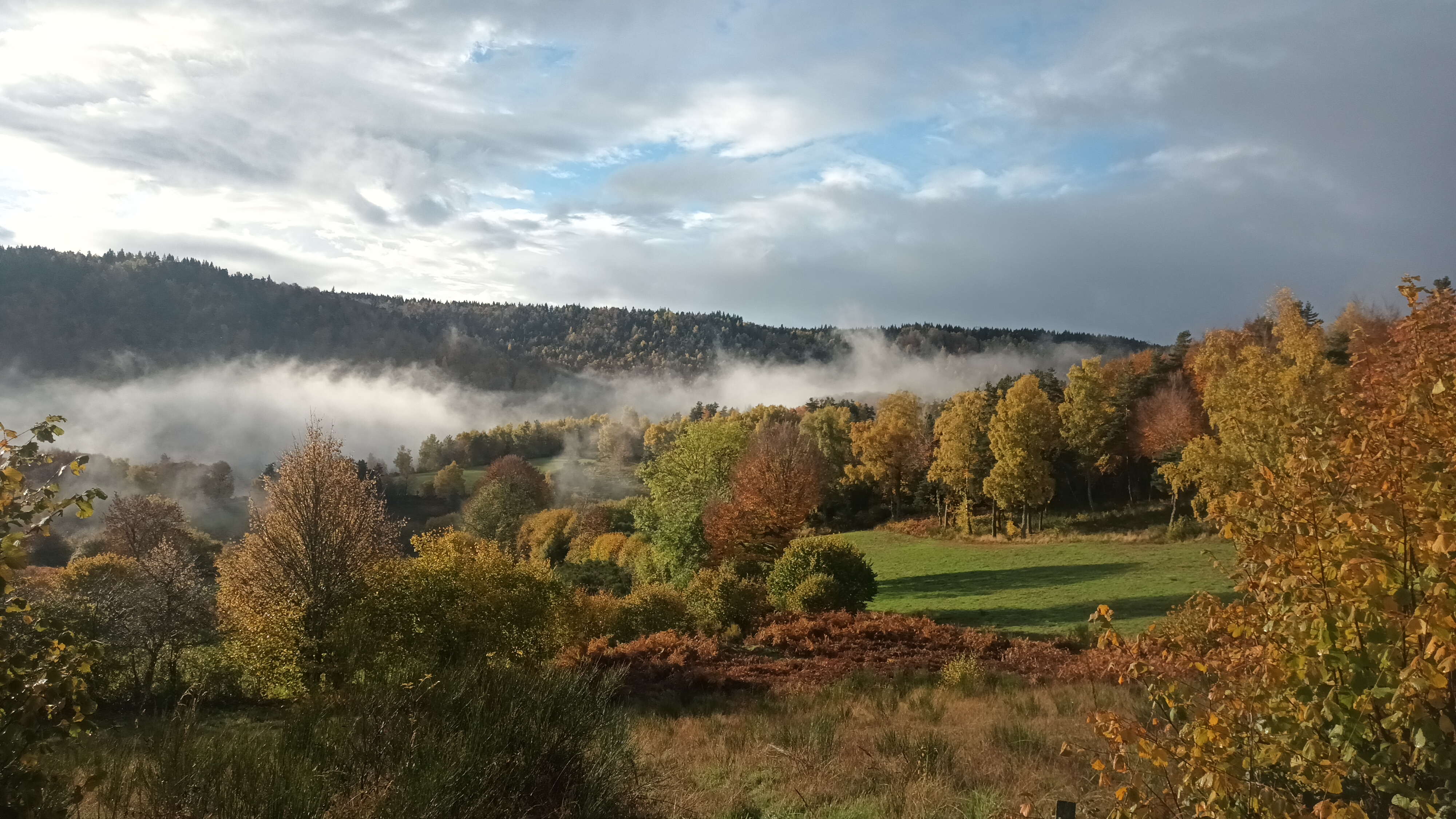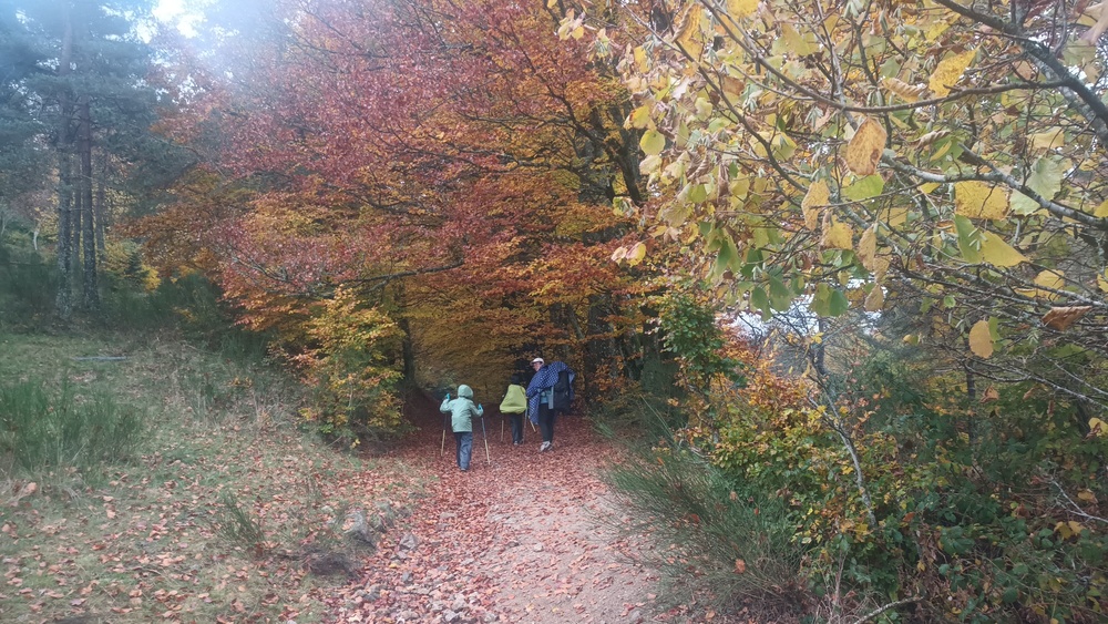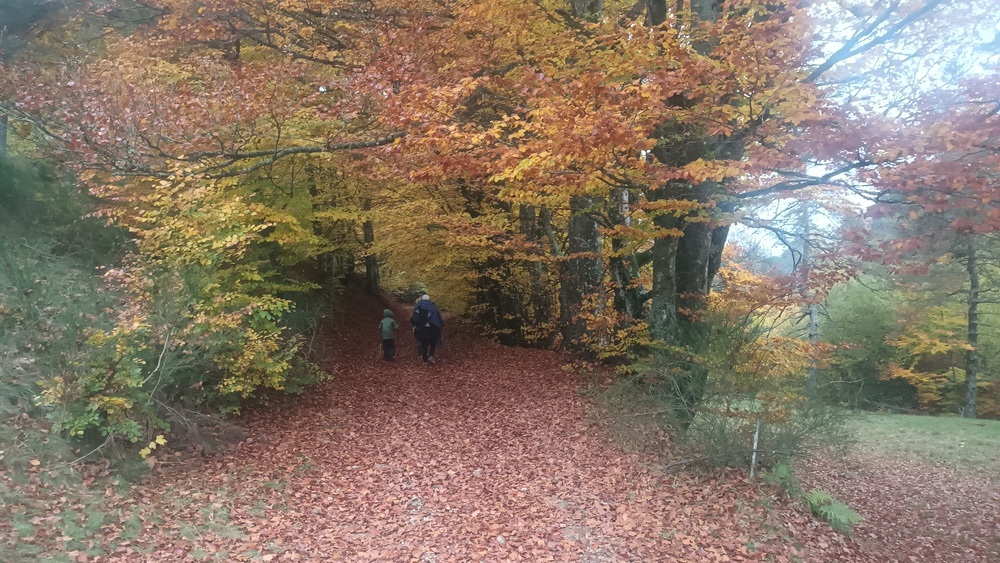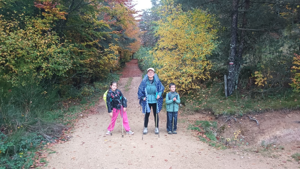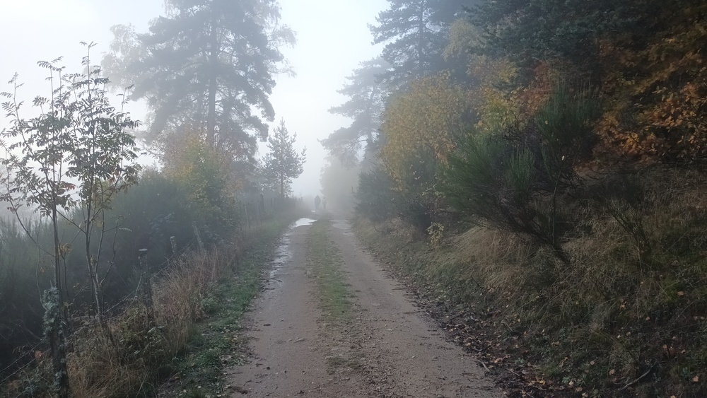 The path continued on into the forest and we hiked through a bit of mud and dodged some big puddles. I was hoping that we would soon come across some pavement, apparently plentiful on the Regordane.