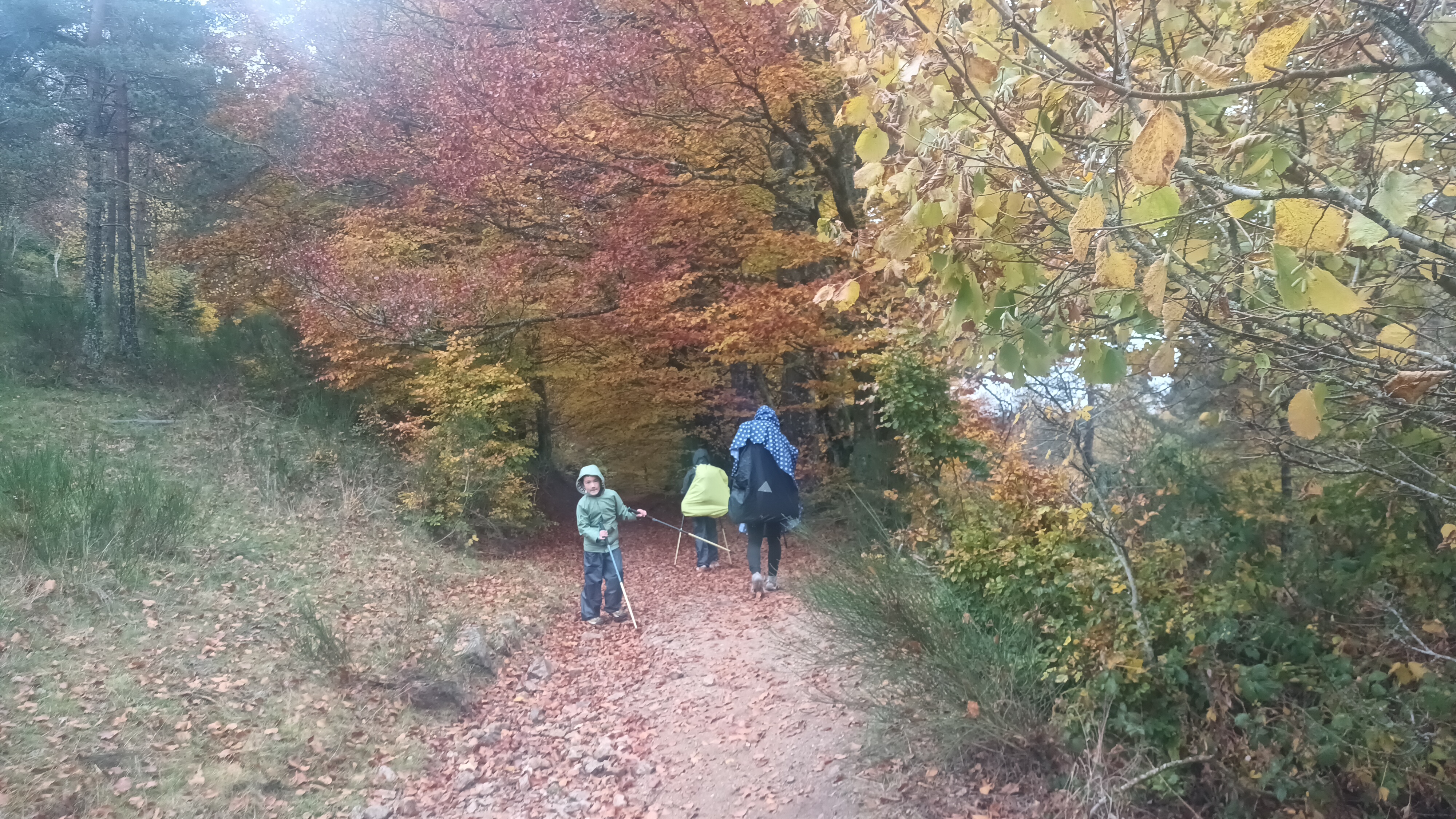 We saw the river Allier on the way, and took the path out into the hills. We took a short break while the children ate some more food.