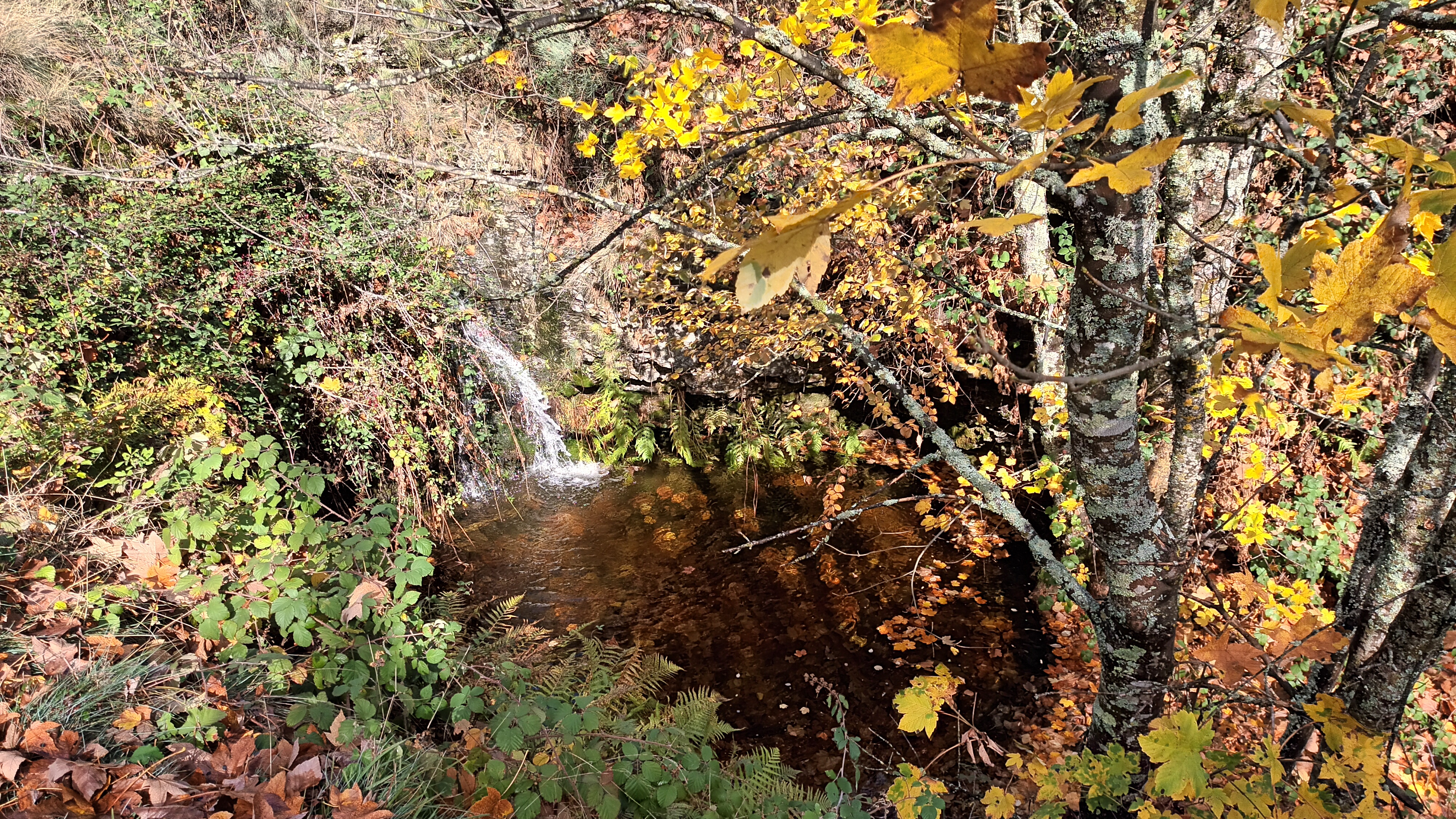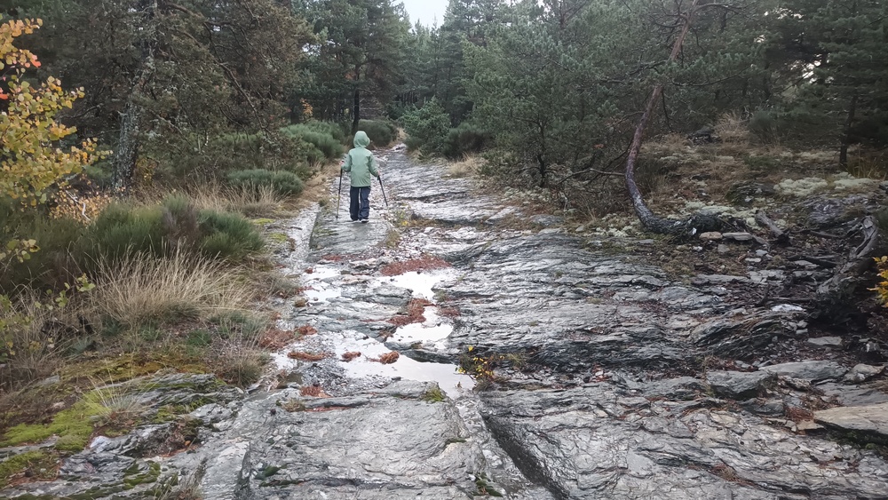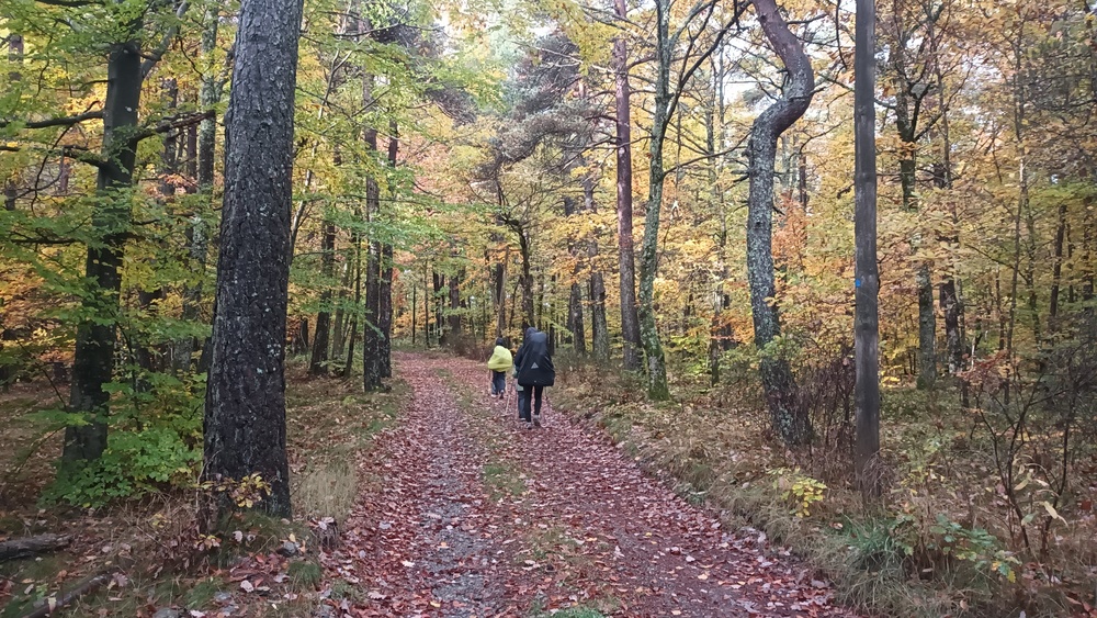 In the morning, we dealt with some light rain as we walked an old abandoned road in the forest. It must be mentioned that the fall colors are beautiful here, and the storms have been whipping the leaves off of the trees.