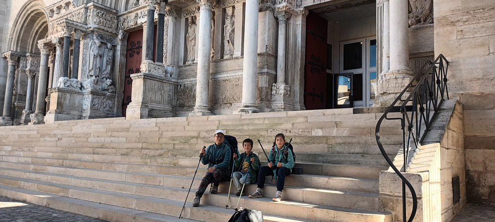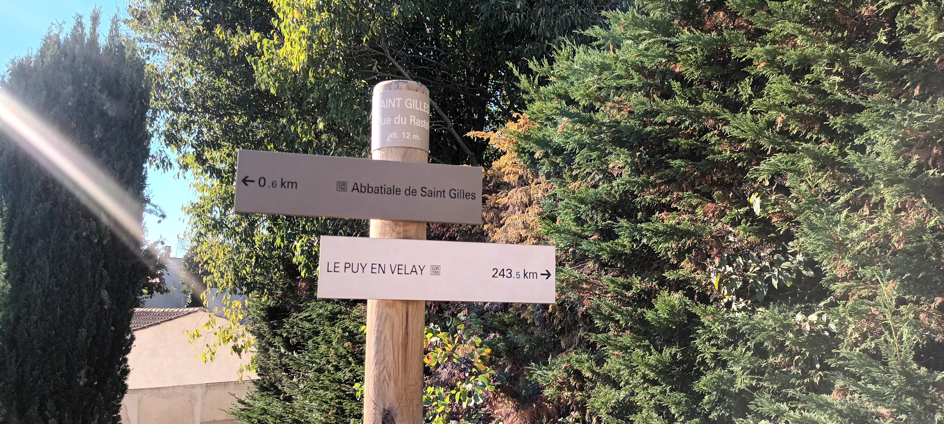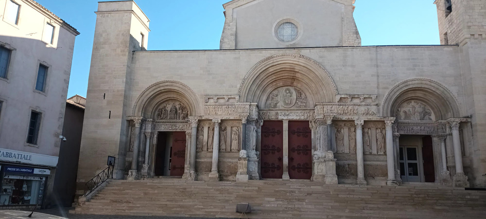 Entering Saint-Gilles, we got something to drink at the store, then made our way to the Abbey of Saint-Gilles. Finished!
