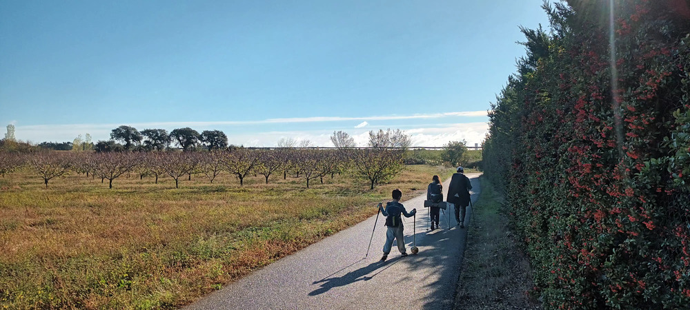 Last day of the hike! We got up early as usual and got out of Générac, hitting the roads. The path has been all roads from Nîmes onward, and we continued on paved and dirt roads this morning.